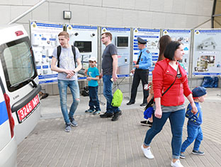 «Служим Закону. Народу. Отчизне!» – под таким девизом на открытой площадке возле музея проходила презентация блока Министерства внутренних дел Республики Беларусь, посвященного 100-летию белорусской милиции. Сотрудники центра культурно-воспитательной работы МВД в форме одежды прошлых лет представляли выставку ретроавтомобильной и современной техники милиции. Особый интерес здесь вызывал бронеавтомобиль Рено Мастер «Любава СА-3500» – высокотехнологичное средство защиты экипажа и перевозимого груза от различных средств нападения. |