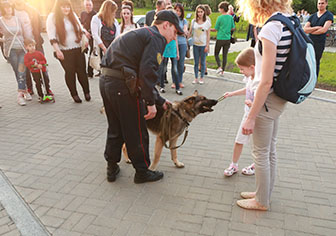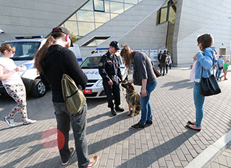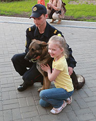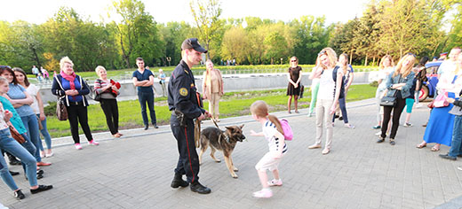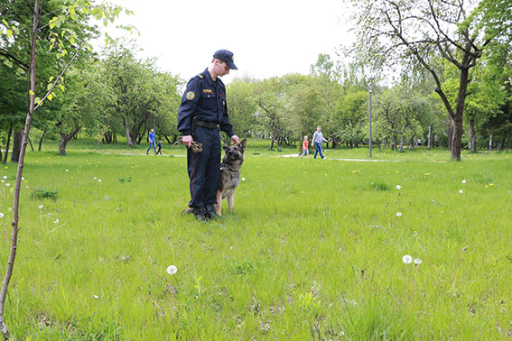 Здесь же проходило и показательное выступление кинологов питомника служебно-розыскного собаководства ГУВД Мингорисполкома со служебными собаками.