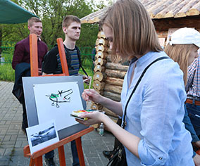 На площадке рядом с самолетом ЛИ-2 располагалась «Партизанская художественная школа». Детей и взрослых приглашали принять участие в выставке-конкурсе «Рисуете ЛИ вы?» и нарисовать с натуры самолет ЛИ-2. Готовые работы отмечались памятными сувенирами музея и демонстрировались здесь же, на импровизированной выставке.