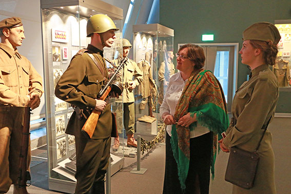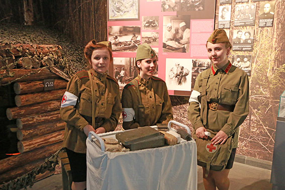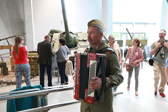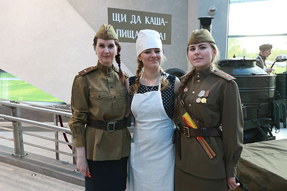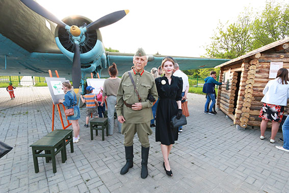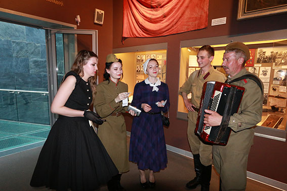 Персонажи военных лет заполнили и залы музея: возле танка Т-34 историей своей жизни делилась водитель-механик танка Мария Октябрьская; у 85-мм зенитной пушки звучали воспоминания о нелегком боевом пути зенитчицы Натальи Шолох; возле самолета У-2 о секретах авиации на фронтах рассказывала «ночная ведьма» – летчица Мария Смирнова. Посетители также могли пообщаться с известным фотокорреспондентом Александром Дитловым и увидеть уникальные снимки 1941–1945 гг., которые сохранила его камера.