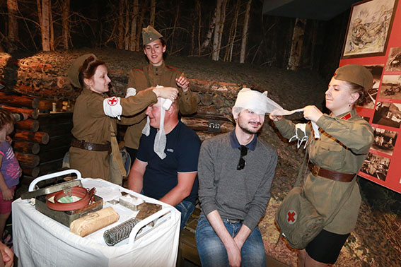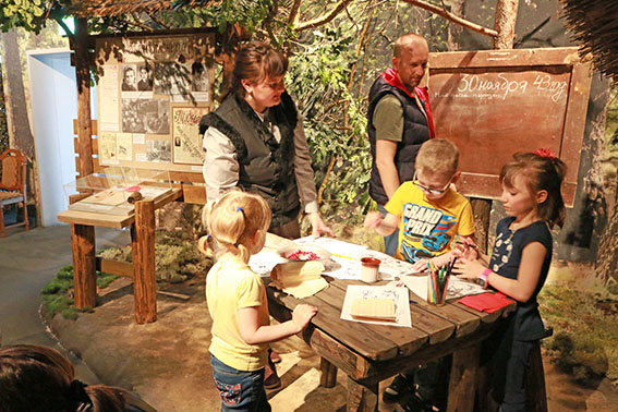 Дальше можно было побывать в «подпольной квартире» и принять участие в создании макета подпольной газеты «Звязда», пройти обучение в «партизанской лесной школе», сделать перевязку в «военно-полевом госпитале» и получить «медаль “За взятие Берлина”».