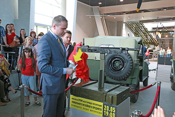Главным же событием праздника стала презентация уникального музейного предмета. Под аплодисменты посетителей музея и представителей прессы директор музея Дмитрий Геннадьевич Шляхтин раскрыл главную интригу месяца: загадочным предметом оказался пулемет Кольт-Браунинг обр. 1895/1914 г. Уникальный по редкости образец оружия поступил на вооружение Русской императорской армии в 1915 г., участвовал в сражениях Первой мировой войны. В мае 2013 г. он был передан на хранение музею правоохранительными органами Республики Беларусь.