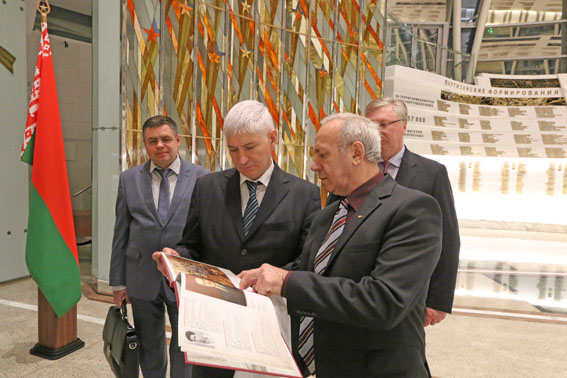 16 ноября 2016 г. Белорусский государственный музей истории Великой Отечественной войны посетила официальная делегация Алтайского края во главе с заместителем губернатора Виктором Алексеевичем Мещеряковым. Делегация находится в нашей стране с деловым визитом в рамках реализации программы развития торгово-экономических отношений и сотрудничества. В графике алтайской делегации – посещение белорусских предприятий в Минске, Гродно, городском поселке Вороново Гродненской области, участие в пятом заседании двусторонней комиссии по координации сотрудничества между Республикой Беларусь и Алтайским краем Российской Федерации.