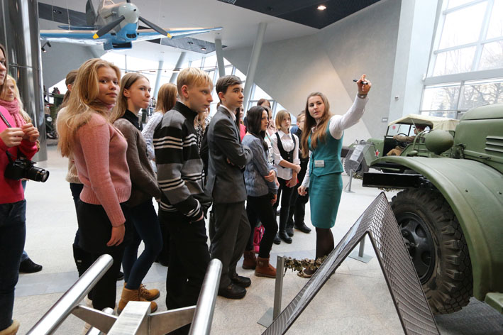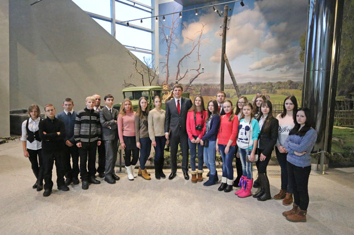 Накануне финалисты конкурса ознакомились с экспозицией музея. Экскурсию по залам музея с ними провели научные сотрудники отдела научно-просветительской работы Владимир Костюкович и Анна Исакова.