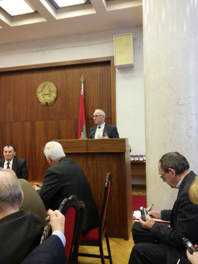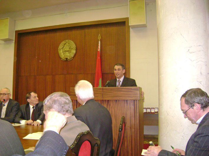 В своём выступлении в Колонном зале Центрального Дома офицеров Николай Витальевич Скобелев отметил основные направления работы музея с Министерством обороны Республики Беларусь, управлениями военного ведомства, воинскими частями и учебными заведениями по воспитанию личного состава на боевых традициях защитников Отечества.