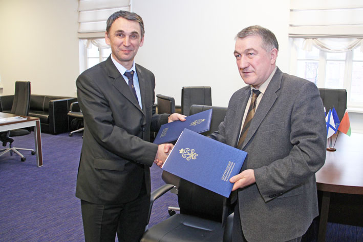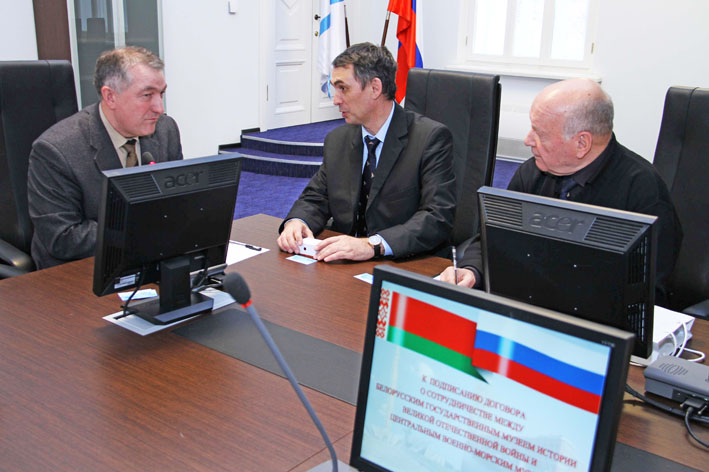 Директор музея Скобелев Н.В. и сотрудники музея приняли участие во встрече Белорусского союза военных моряков и Международной ассоциации общественных организаций ветеранов ВМФ и подводников. Руководитель организации адмирал Максимов Н.М. и генеральный директор капитан 1-го ранга Мамайкин В.П. предложили провести ряд совместных мероприятий в стенах Белорусского государственного музея истории Великой Отечественной войны в 2015-2016 гг. по показу участия уроженцев Республики Беларусь в боевых действиях на флотах и фронтах войны и организации экспозиции по военно-морской тематике.