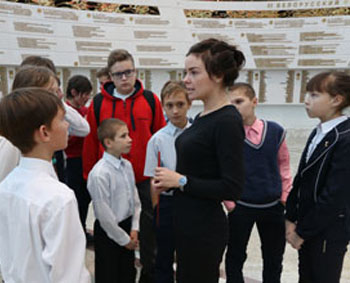 Учащиеся Московского района столицы ознакомились с экспозицией музея. Обзорную экскурсию по залам со школьниками провела научный сотрудник Светлана Угринович.