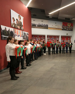 В зале «Наследники Великой Победы» прозвучали слова торжественного обещания пионера Республики Беларусь, в котором молодые люди, вступая в ряды Белорусской республиканской пионерской организации, перед своими друзьями торжественно обещали любить свою Родину, быть добрым, честным и справедливым, всегда выполнять Законы пионеров Беларуси.