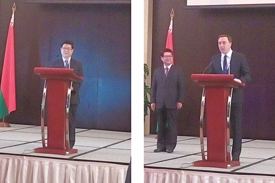 Выступивший на приеме Чрезвычайный и Полномочный Посол Китайской Народной Республики в Республике Беларусь господин Цуй Цумин отметил, что после того, как 20 января 1992 г. были установлены дипломатические отношения, дружба между Китаем и Беларусью получила небывалое развитие по глубине и масштабу, а китайско-белорусские отношения характеризуются искренностью, равноправием и большим доверием. Китай и далее будет считать Беларусь своим надежным другом и развивать с ней сотрудничество во всех областях, чтобы вывести двустороннее взаимодействие на новый уровень во благо народов двух стран.