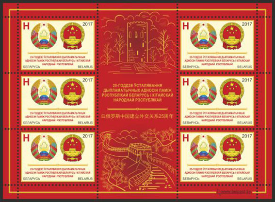 К юбилейной дате Министерство связи Республики Беларусь выпускает в обращение почтовую марку «25-летие установления дипломатических отношений между Республикой Беларусь и Китайской Народной Республикой».