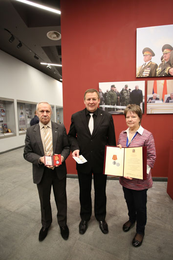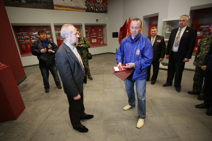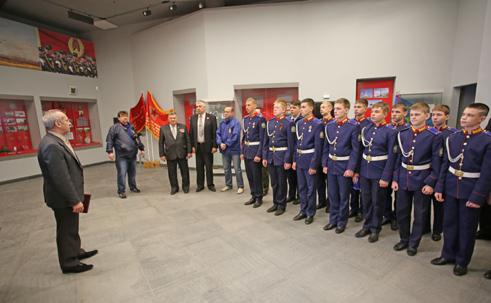 Председатель Минской городской организации ветеранов войны в Афганистане «Память» Владимир Ильич Шоков в зале «Наследники Победы» рассказал кадетам о героических подвигах воинов-интернационалистов, работе общественного объединения по увековечиванию их памяти. В это зале он вручил памятную медаль «25 лет вывода советских войск из Афганистана» заведующему филиалом «Памятник воинам-интернационалистам» Виктору Иванчикову.