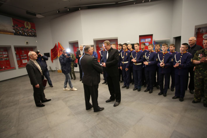 В ходе экскурсии в соответствии с постановлением правления Межрегиональной общественной организации ветеранов оперативных служб «Честь» в фонды музея передана на хранение юбилейная медаль «70 лет Великой Победы».