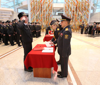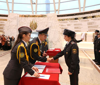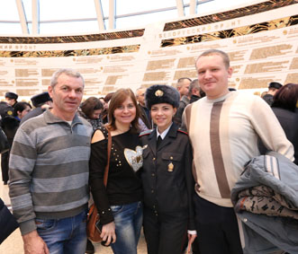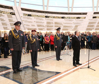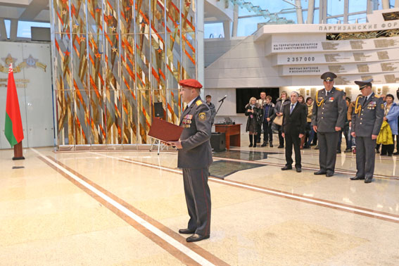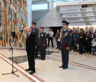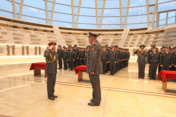 «Символично, что столь значимая церемония проходит именно в этом мемориале, в Зале Победы Белорусского государственного музея истории Великой Отечественной войны. Здесь золотыми буквами вписаны имена Героев Советского Союза – воинов и партизан, проявивших беспримерное мужество при освобождении белорусской земли от «коричневой чумы», – подчеркнул в своем выступлении ветеран МВД, подполковник в отставке Валерий Иванович Шаманов. Уверен, что сотрудники милиции, которые здесь приняли Присягу, также, как их деды, будут с честью проявлять себя на профессиональном поприще».