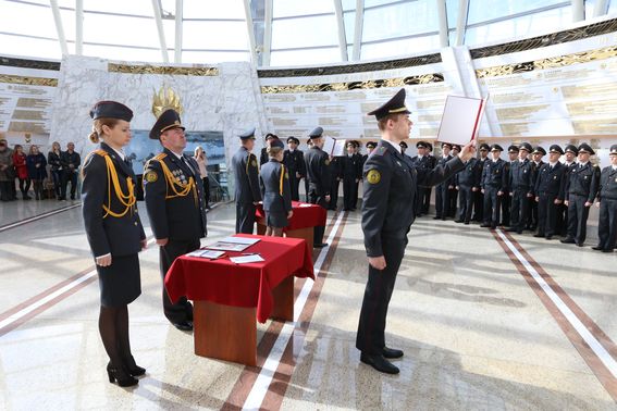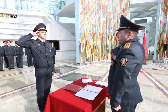 Начальник учреждения образования полковник милиции Игорь Оберемко поздравил молодых сотрудников Департамента с этим важным событием, пожелал всегда сверять свои поступки со словами Присяги и чтобы торжественная фраза: «Служу Республике Беларусь!» стала их жизненным девизом.