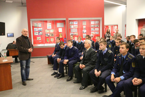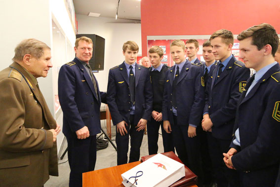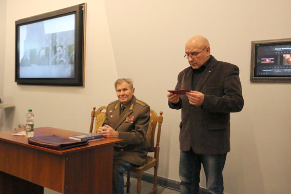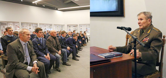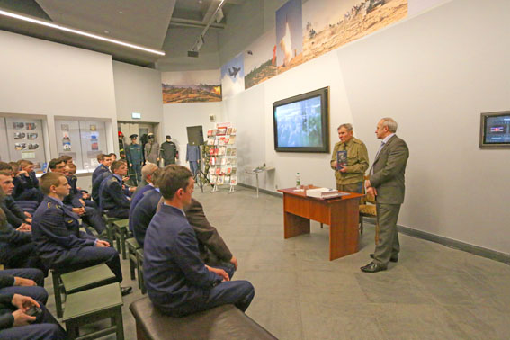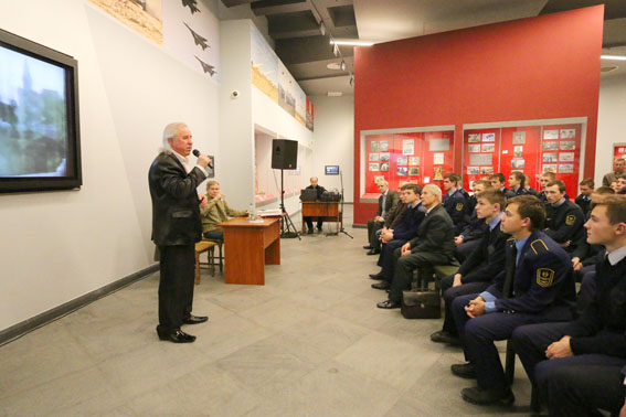 Открыл патриотический урок ученый секретарь Валерий Надтачаев. Перед участниками выступил почетный летчик 1-й истребительной авиационной эскадрильи 61-й истребительной авиационной базы, заслуженный работник культуры Беларуси, военный писатель генерал-майор авиации в отставке Анатолий Константинович Сульянов. У него, уроженца Подмосковья, детство было опалено войной. Он хорошо помнит суровую зиму 1941–1942 гг., в послевоенные годы неоднократно встречался с такими выдающимися людьми, как Маршалы Советского Союза К. Рокоссовский, В. Чуйков, И. Баграмян, Герой Советского Союза маршал авиации С. Руденко, генералы П. Батов, Н. Лященко и К. Телегин. Эти незабываемые встречи позволили Анатолию Константиновичу получать информацию из первых уст и освещать в литературных произведениях только историческую правду о минувшей войне.