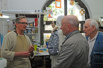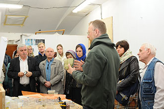 В ходе экскурсии сотрудники музея посетили мастерские, в которых создаются шедевры православной культуры, ознакомились с работой стенописно-мозаичной и иконописной мастерских, побеседовали с мастерами. Большое впечатление произвел рассказ сестры милосердия Татьяны Хоменковой о работе Сестричества в честь преподобномученицы Великой княгини Елисаветы, о делах милосердия и нелегком жизненном пути Великой княгини. Регулярные посещения людей, в той или иной степени изолированных от общества, общение с ними, духовная и душевная поддержка – это те задачи, которые выполняет Сестричество. Среди подопечных Сестричества – пациенты нескольких клинических больниц Минска, в том числе психоневрологических интернатов для детей и взрослых в Новинках.