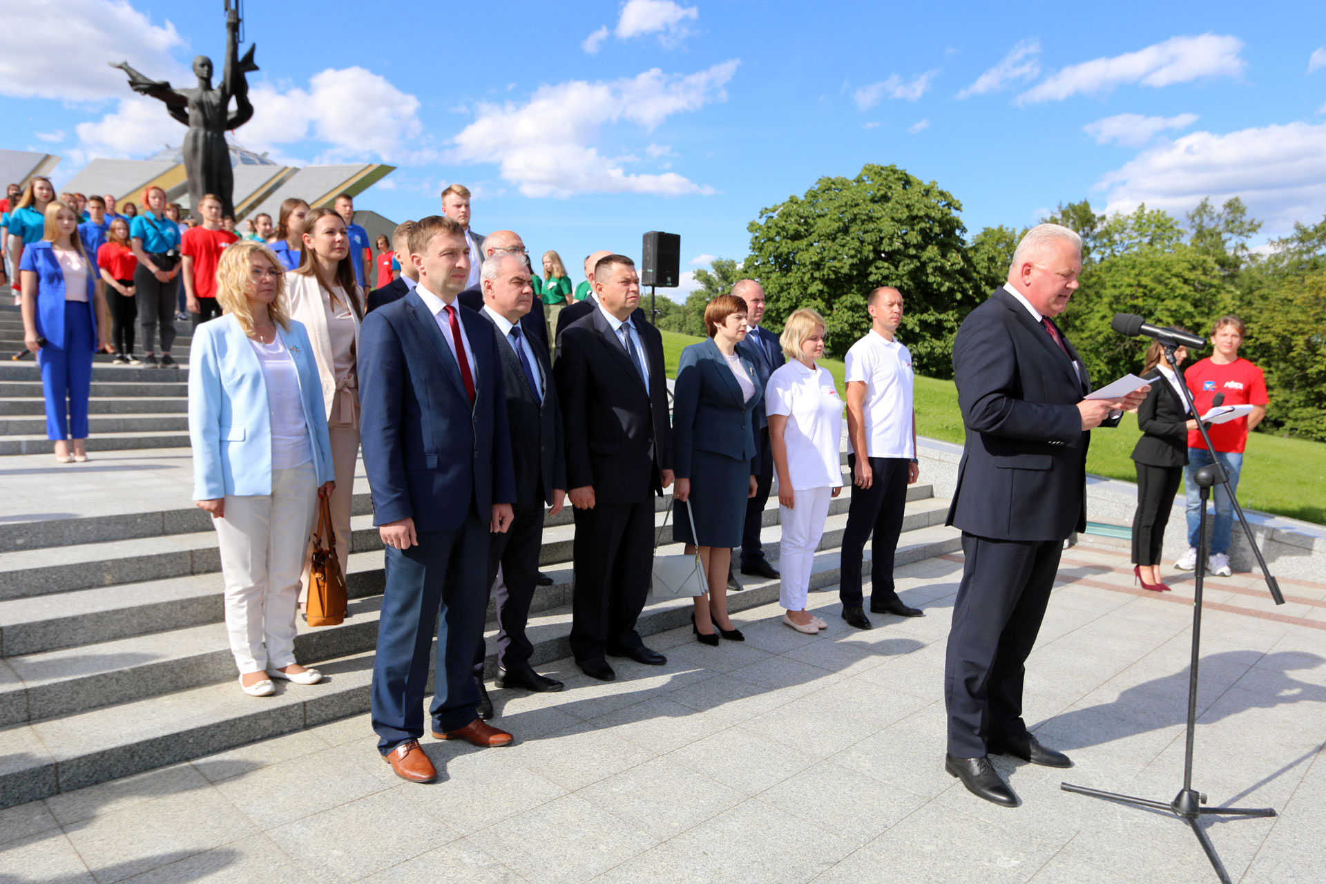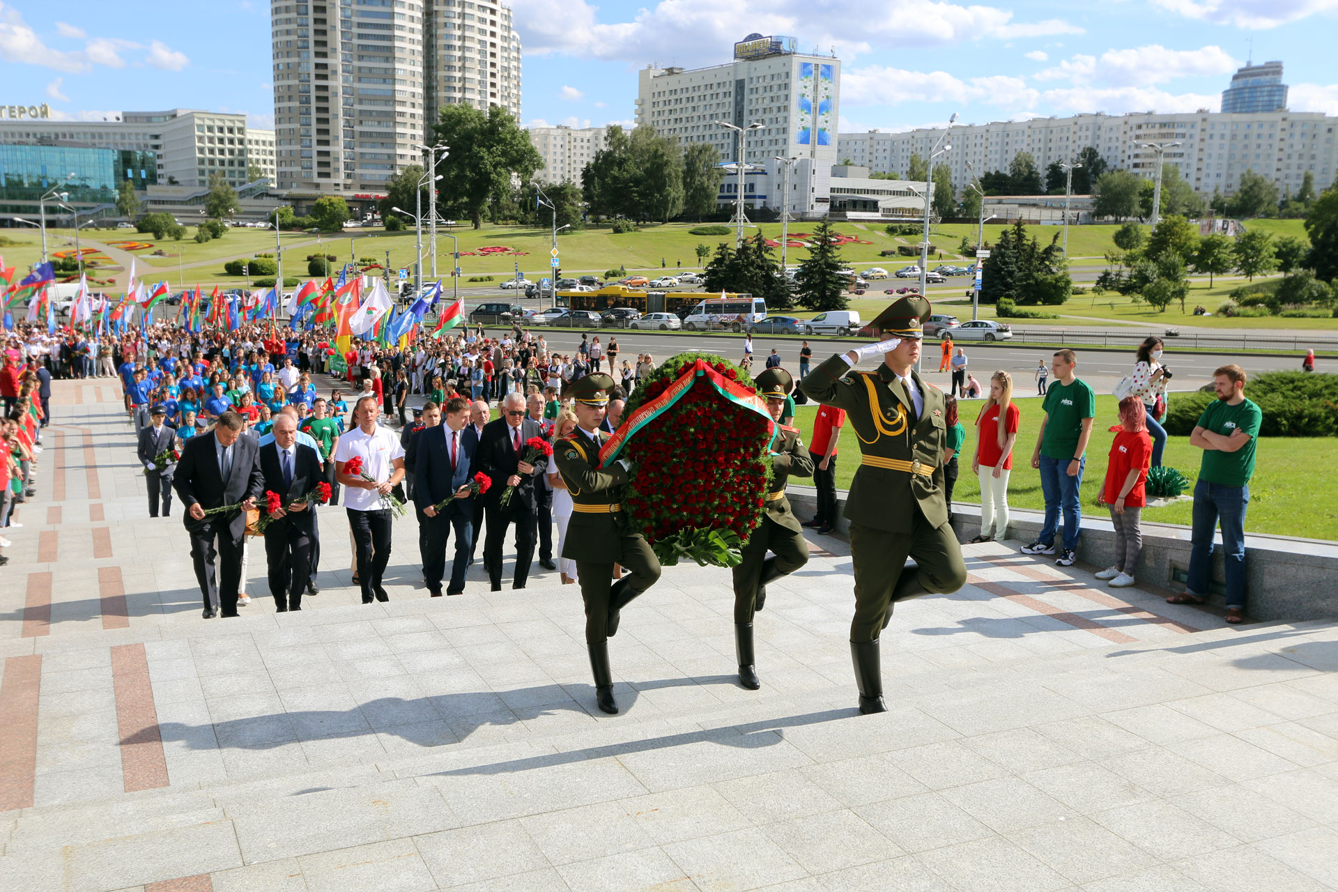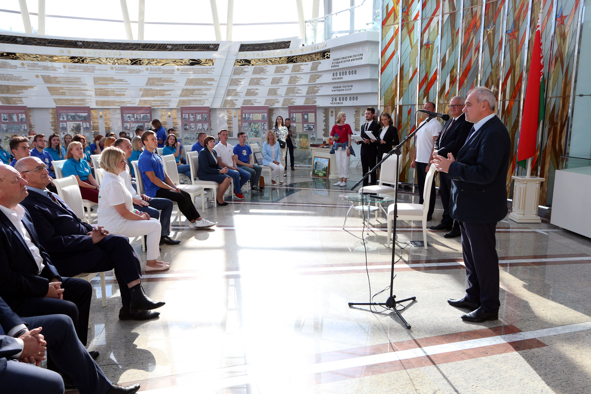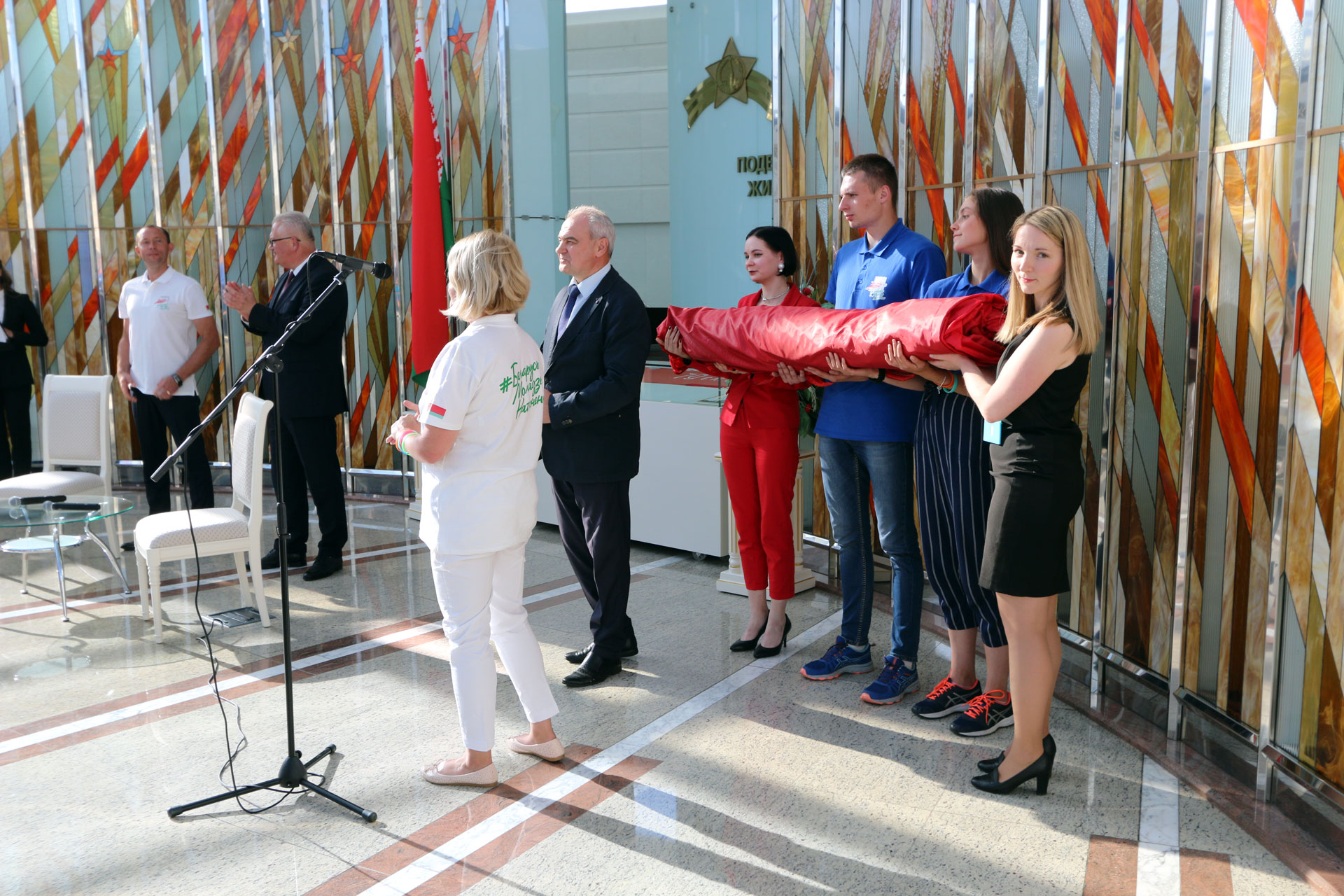 В рамках завершения проекта, прошел ряд молодежных мероприятий при участии Министра образования Республики Беларусь Игоря Васильевича Карпенко. Началом торжественной церемонии послужило возложение цветов участниками к Стеле «Минск – город-герой». Далее гости встречи переместились в Зал Победы Белорусского государственного музея истории Великой Отечественной войны, где, от лица Министра образования, директору музея Владимиру Сергеевичу Воропаеву было передано полотнище «Беларусь помнит!», а также, художественная военная литература. Все переданные материалы займут достойное место в фондах и библиотеке музея и будут способствовать историческому и патриотическому образованию будущих поколений.