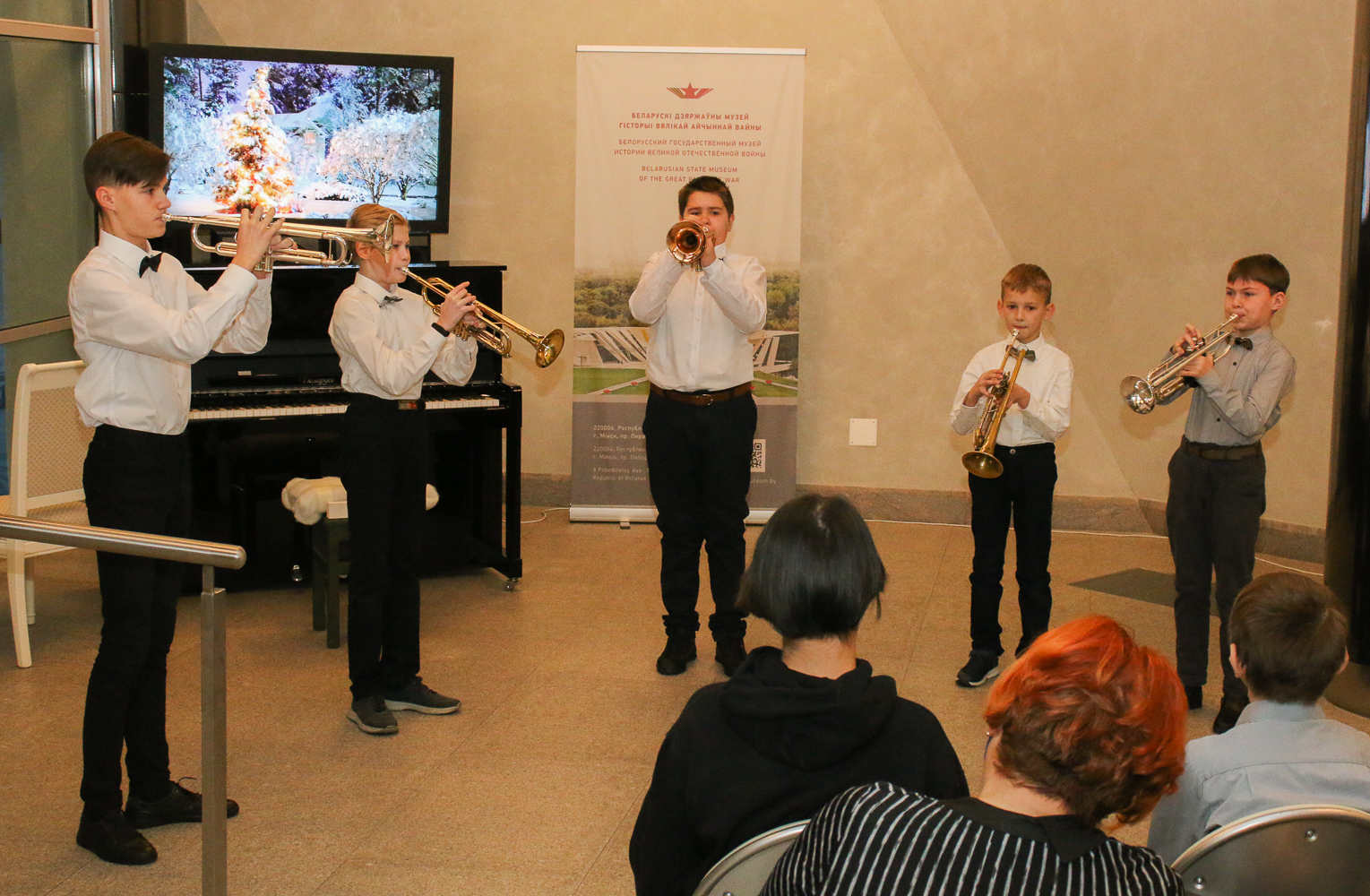 Сразу после программы состоялось музыкальное поздравление от учеников Детской музыкальной школы искусств №10 им. Е.А. Глебова г. Минска. Кроме всего прочего, дети посетили выставку ёлочных игрушек «В гостях у Деда Мороза», увидели работы учащихся гимназии-колледжа искусств г. Минска и получили памятные сувениры от музея.