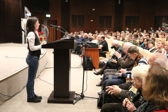 Научные сотрудники Светлана Угринович и Макар Кучук познакомили присутствующих со стихотворением народного поэта Беларуси Петруся Бровки «Музей Отечественной войны», где есть и такие строки: