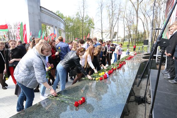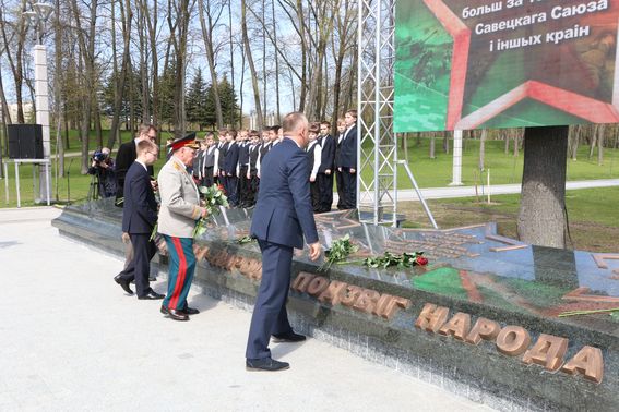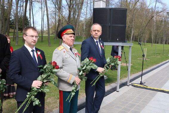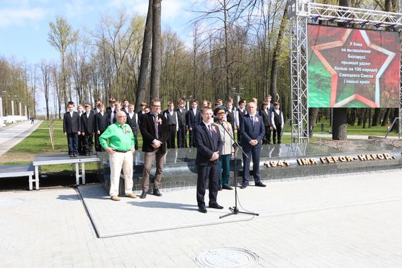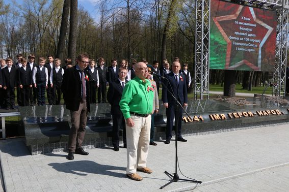 На митинге по случаю торжественной церемонии открытия памятного знака, посвященного памяти граждан всех национальностей, принимавших участие в освобождении Беларуси от немецко-фашистских захватчиков, выступили: