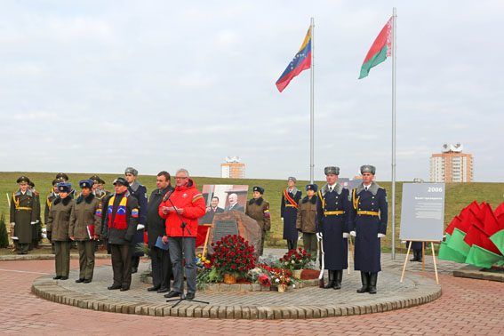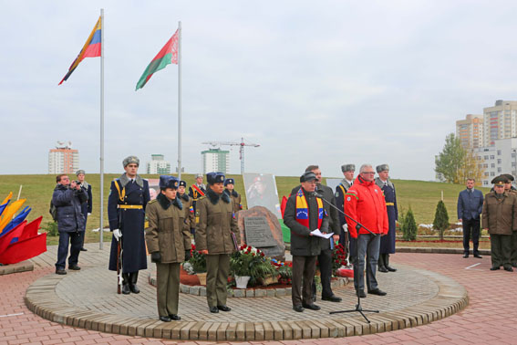 На торжественной церемонии в парке выступил Чрезвычайный и Полномочный Посол Боливарианской Республики в Республике Беларусь вице-адмирал Хосе Хоакин Боггиано Периччи, который сказал: «Это очень важное и символическое мероприятие для нас всех. Политическое сотрудничество между нашими государствами становится основой для дальнейшего развития дружественных отношений в различных сферах. Это мероприятие убедительно подчеркивает, что правительства наших стран очень тесно связаны и плодотворно сотрудничают, как и народы Беларуси и Венесуэлы». Господин Посол поблагодарил народ Беларуси за всестороннюю поддержку, которую белорусы оказывают Венесуэле после ухода из жизни Уго Чавеса, и передал в дар Минску бюст команданте. Планируется, что бюст установят в парке в следующем году. В 2017 г. исполнится 20 лет с момента установления дипломатических отношений между Беларусью и Венесуэлой и 10 лет со дня первого визита Президента Республики Беларусь Александра Лукашенко в эту латиноамериканскую страну.