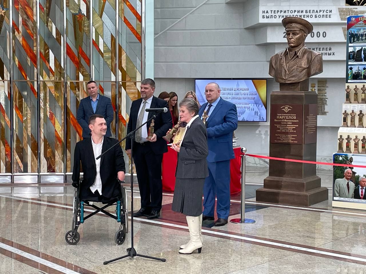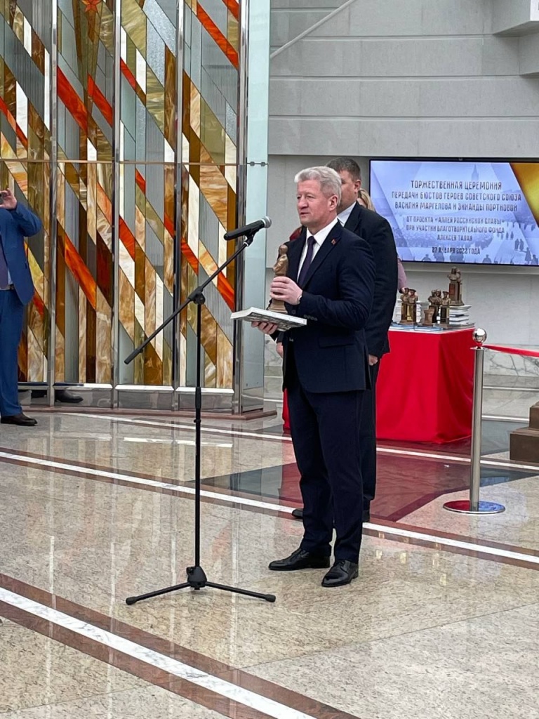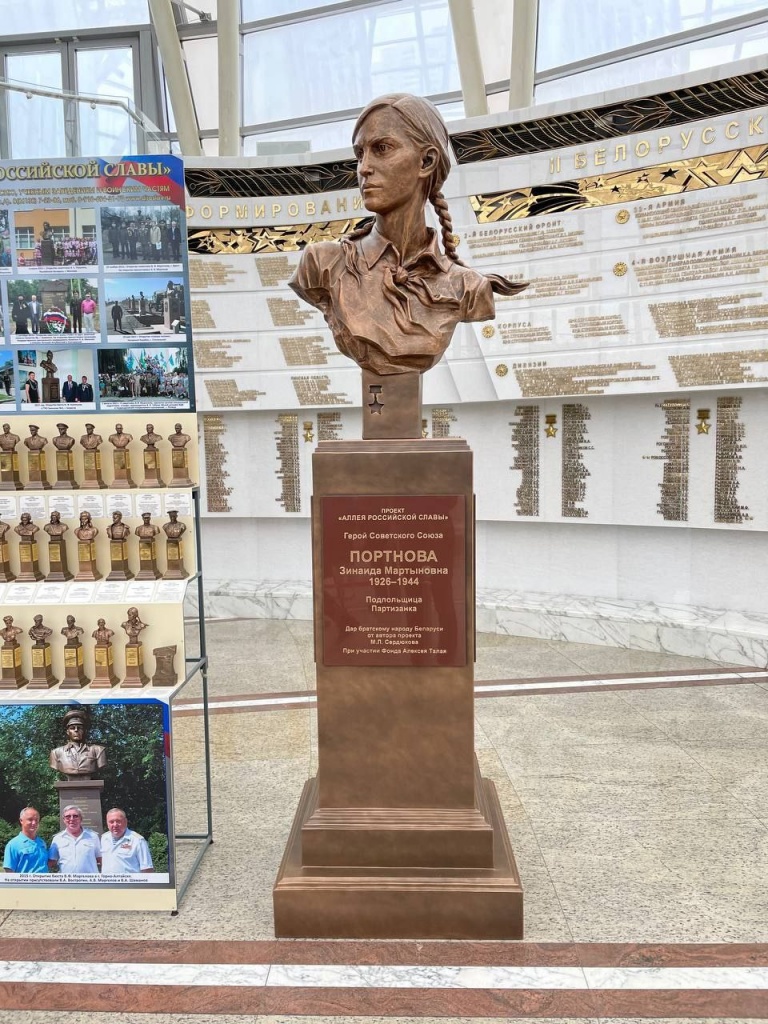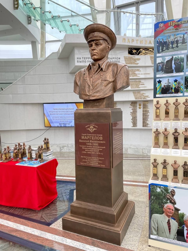 В Белорусском государственном музее истории Великой Отечественной войны состоялась торжественная церемония передачи бюстов Героев Советского Союза Василия Маргелова и Зинаиды Портновой от проекта «Аллея Российской славы» при участии благотворительного фонда имени Алексея Талая.