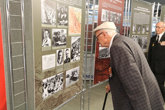 Состоялась также экскурсия по открывшейся недавно выставке «Следы войны», где вниманию посетителей представлено более 200 предметов военного обмундирования и амуниции из фондовых коллекций музея и образцов редкой техники из уникальной коллекции Тикунова Алексея Николаевича.