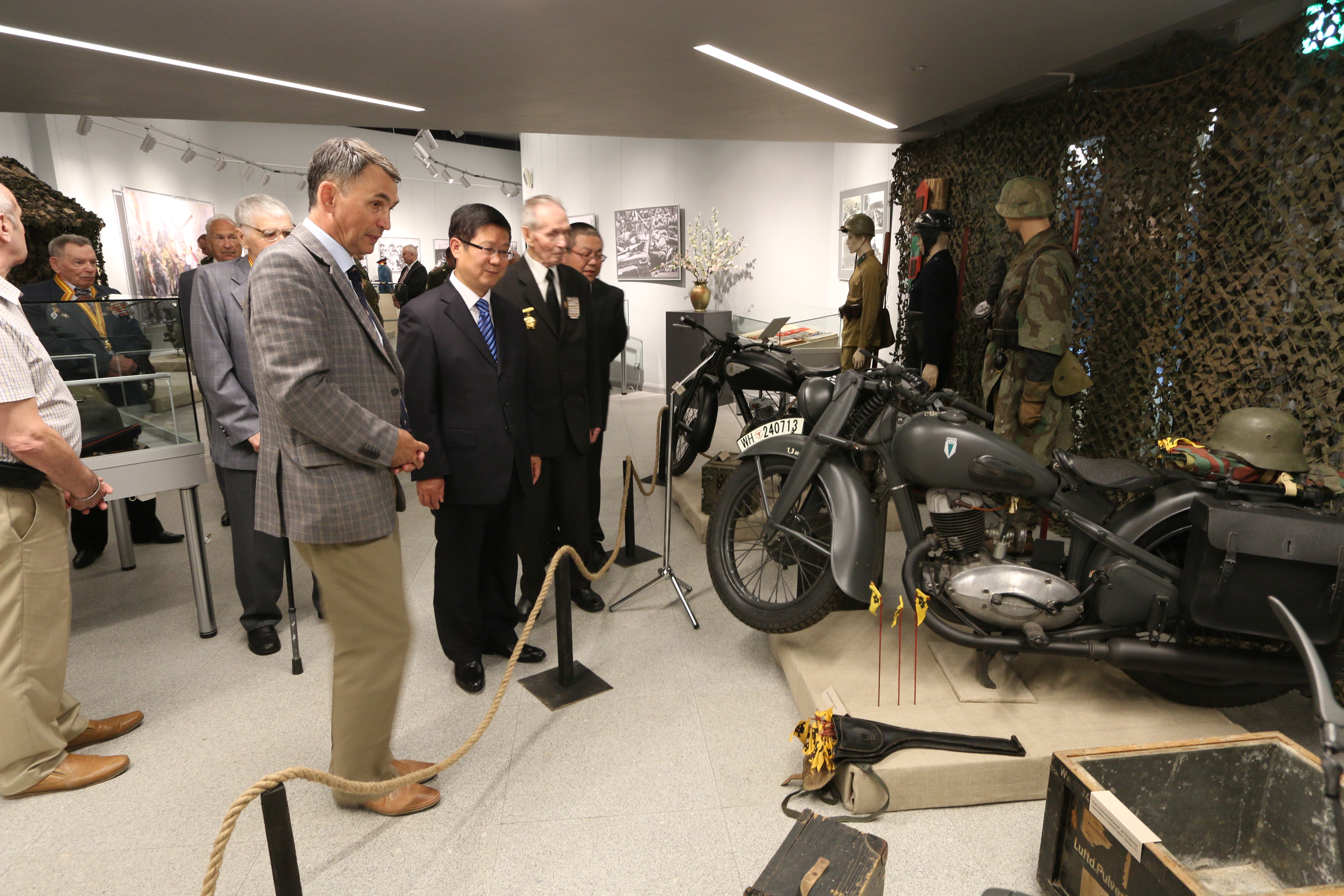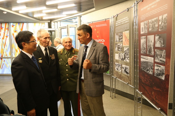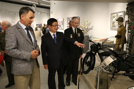 По случаю годовщины со дня посещения Председателем Китайской Народной Республики Си Цзиньпином Белорусского государственного музея истории Великой Отечественной войны 31 мая 2016 г. Чрезвычайный и Полномочный Посол Китайской Народной Республики в Республике Беларусь господин Цуй Цимин провел прием в конференц-зале участников боевых действий на Дальнем Востоке с японскими милитаристами в августе 1945 г.