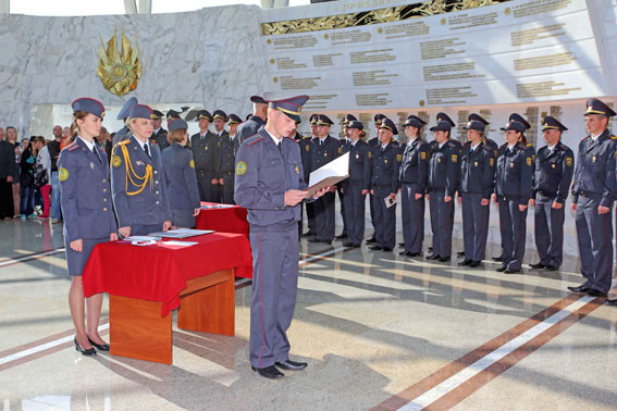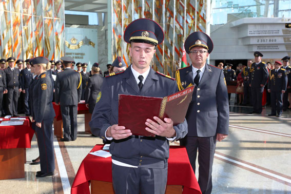 «…поступаю на службу в органы внутренних дел Республики Беларусь, присягаю на верность Республике Беларусь и ее народу, клянусь свято соблюдать Конституцию и законы Республики Беларусь».