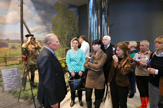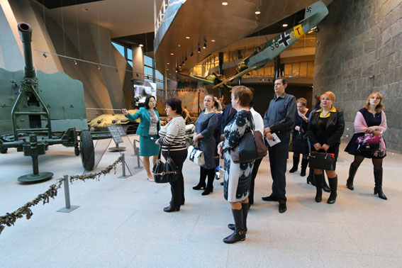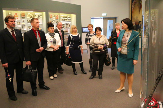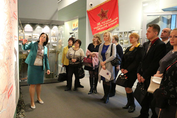 Перед обсуждением актуальных проблем профсоюзной жизни с участниками семинара состоялась экскурсия по экспозиции музея, которую провели заведующий научно-методическим сектором научно-просветительского отдела Владимир Поликарпович Фалецкий и научный сотрудник Татьяна Владимировна Тройнель. В Зале Победы профсоюзные активисты сделали фото на память.