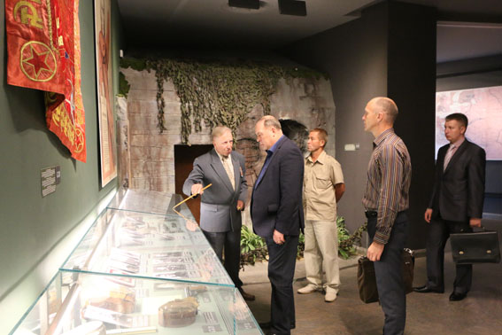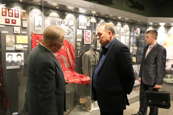 Экскурсию по залам музея с российским военачальником провел участник боевых действий в Афганистане, заведующий сектором научно-методической работы полковник в отставке Фалецкий Владимир Поликарпович.