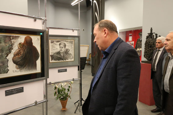 Российский генерал посетил также выставку Михаила Савицкого «Цифры на сердце». В заключение экскурсии генерал-полковнику Анатолию Алексеевичу Сидорову вручен памятный сувенир.