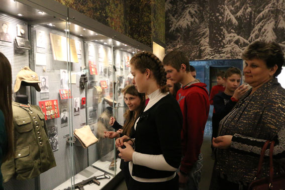 10 марта 2016 г. в сопровождении педагога-организатора Валентины Степановны Полуянович ГУО «Телеханская специальная общеобразовательная школа-интернат» Ивацевичского района Брестской области группа учащихся в составе Дмитрия Трухановича, Андрея Гопты, Никиты Бурна, Калиновской Ольги и других посетила Белорусский государственный музей истории Великой Отечественной войны.