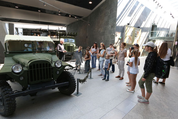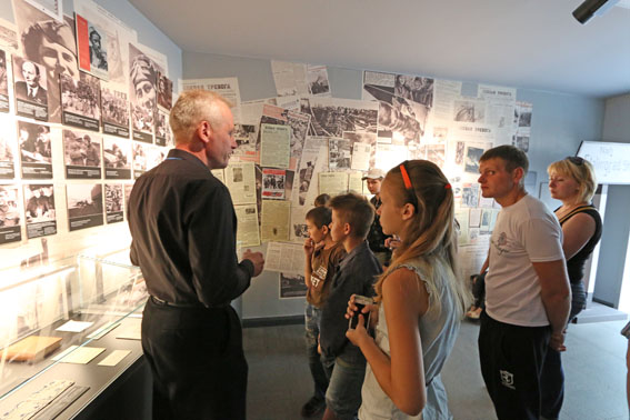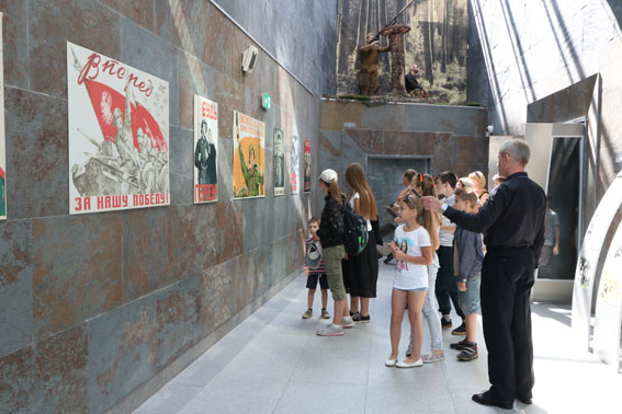 Экскурсия в музей организована с целью развития творческих способностей учащихся и приобщения их к профессии журналиста. Ребята с интересом рассматривали на «Дороге войны» инсталляцию «Фронтовой корреспондент за рулём легкового армейского автомобиля ГАЗ-67». Юных корреспондентов заинтересовали плакаты и стенная печать военных лет, партизанские рукописные журналы. В партизанском лагере, где представлено несколько реконструкций партизанских землянок, ребята ознакомились с лесной типографией, в которой издавались газеты, листовки и брошюры. В интерьере этой типографии – портативный печатный станок, наборная касса, касса-рубашка.