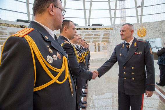 Поздравляя офицеров, Министр МВД отметил: «Во все времена обеспечение безопасности граждан, борьба с преступностью было делом Чести, Долга и Доблести для людей, посвятивших себя служению Закону и Отечеству. Офицерские традиции белорусской милиции – это мощное средство воспитания, поддержания и передачи бесценного наследия, преемственности и связи времен. Именно офицеры являются основным стержнем служебных коллективов органов внутренних дел, сплачивая и объединяя вокруг себя рядовых сотрудников, личным примером вдохновляя их на четкое и решительное следование требованиям служебного долга».