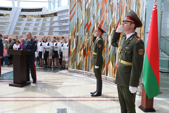 В заключение торжества учащиеся исполнили Гимн Республики Беларусь и сфотографировались на память в Зале Победы и у стелы «Минск – город-герой».