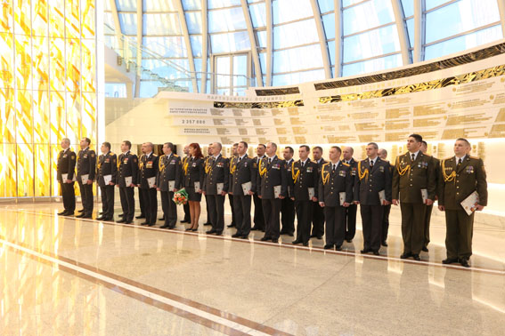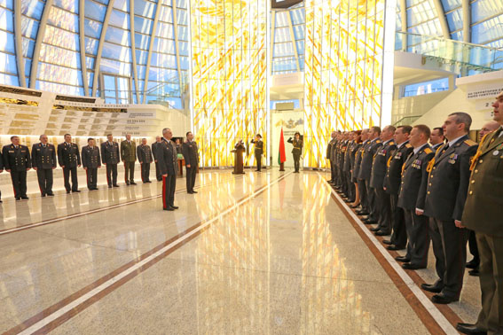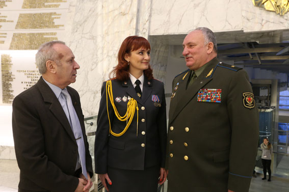 Вручая погоны, Министр внутренних дел генерал-лейтенант милиции Игорь Анатольевич Шуневич тепло поздравил офицеров с присвоением воинских и специальных званий «полковник», отметил важность и символичность проведения данного мероприятия в Белорусском государственном музее истории Великой Отечественной войны. «Проводя этот торжественный ритуал в Зале Победы музея, – отметил Министр, – мы тем самым отдаем дань уважения героическому прошлому белорусского народа, сотрудникам органов внутренних дел, проявившим отвагу и героизм в годы Великой Отечественной войны. Это событие наглядно демонстрирует сопричастность к истории нашего независимого государства, к истории белорусской милиции, которой в 4 марта 2017 г. исполняется 100 лет».