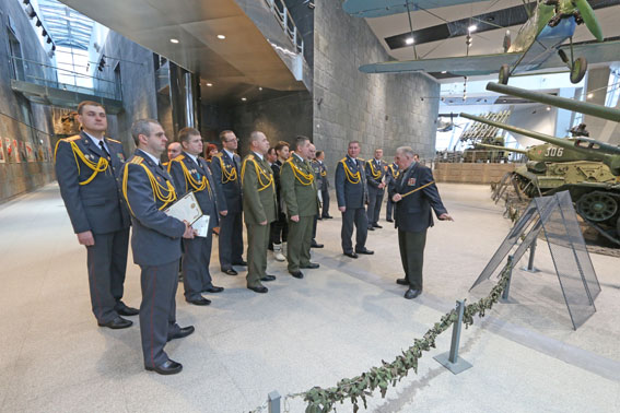 После окончания торжественного ритуала и памятного фотографирования для офицеров МВД организована обзорная экскурсия по музею, которую провел заведующий сектором научно-методической работы, участник боевых действий в Афганистане полковник в отставке Владимир Поликарпович Фалецкий.