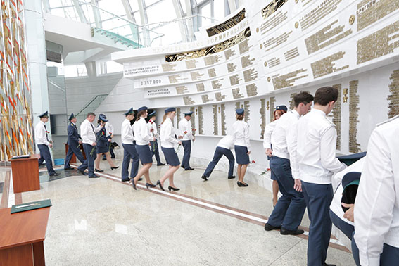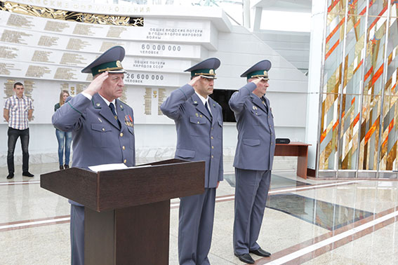 В память о героических подвигах партизан, подпольщиков и воинов Красной Армии, освободивших в 1944 г. родную Беларусь от немецко-фашистских захватчиков, таможенники возложили живые цветы в Зале Победы. Затем состоялось памятное фотографирование участников торжественной церемонии.