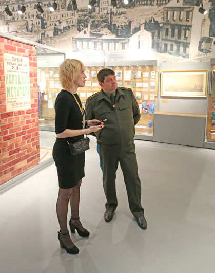 Главный хранитель фондов музея Светлана Потупчик ознакомила командующего ССО с экспозицией музея.