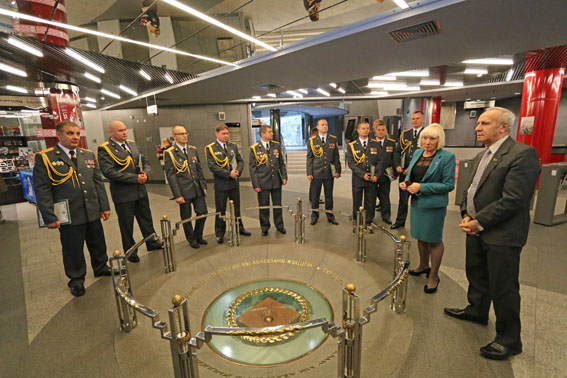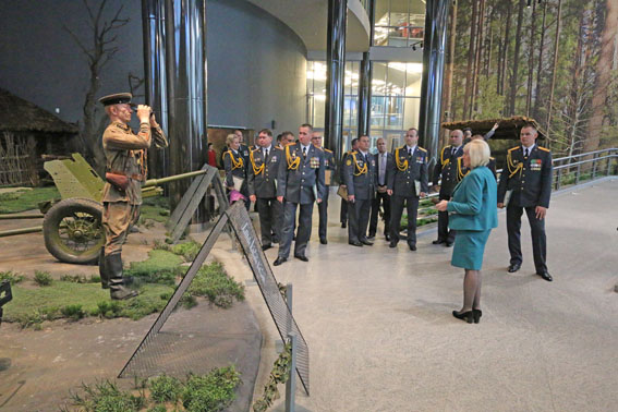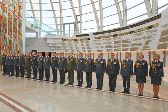 После окончания торжественного ритуала и памятного фотографирования для офицеров МВД организована обзорная экскурсия по музею. Затем полковники органов внутренних дел и внутренних войск возложили цветы к обелиску «Минск – город-герой».
