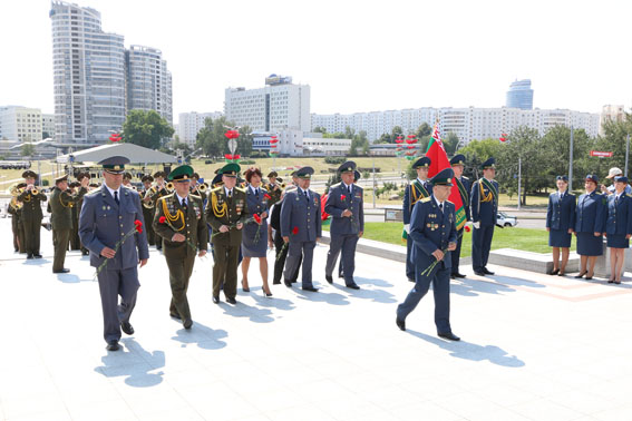Участники церемонии возложили цветы к подножию стелы «Минск – город-герой».