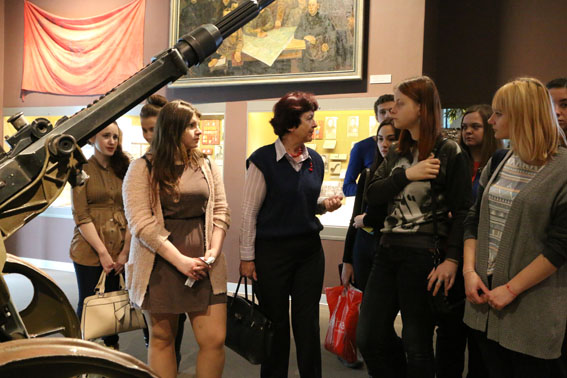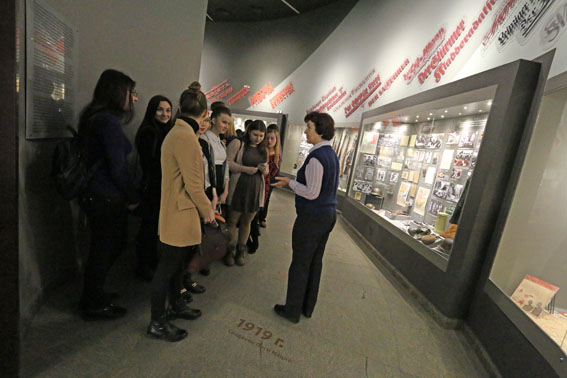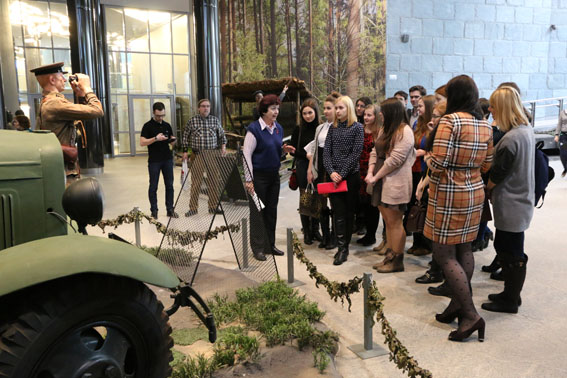 11 марта 2016 г. в Белорусском государственном музее истории Великой Отечественной войны проведены практические занятия со студентами 2-го курса Белорусского государственного университета культуры и искусства, обучающимися в вузе по специальности «Музейное дело и охрана историко-культурного наследия». Занятия в музейно-педагогических станциях в экспозиционных залах «Дорога войны» и «Партизанское движение и антифашистская подпольная борьба в Беларуси» провели Мария Аркадьевна Беспалая – доктор исторических наук, профессор Белорусского государственного университета культуры и искусств и Ирина Захаро – научный сотрудник отдела истории партизанского движения.