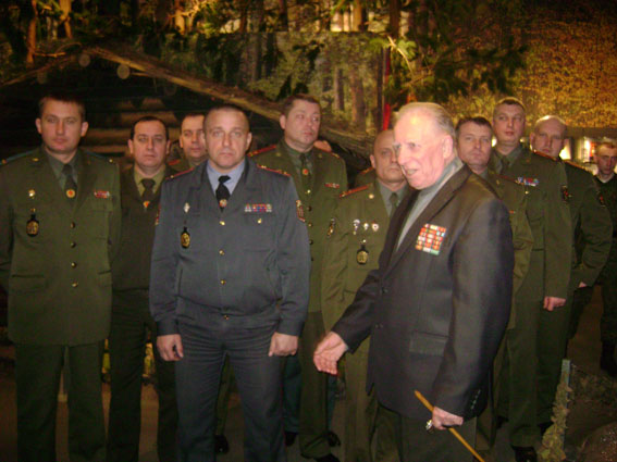 Особо заинтересовали офицеров факультета штабная землянка, где командир разрабатывает план боевой операции, радист принимает сводки, рядом ученик «лесной школы» учит уроки, а также самодельная партизанская пушка на колесах от сеялки. Пушка была на вооружении партизанского отряда «Искра» бригады «Разгром» Минской области.