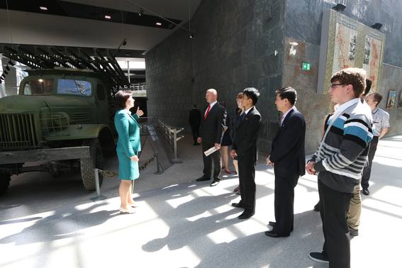 5 июня 2016 г. Белорусский государственный музей истории Великой Отечественной войны посетила делегация Северной Кореи: Ан Хен Мин – начальник сектора по России и СНГ Международного отдела ЦК Трудовой партии Кореи, Пхё Мун Су – советник посольства КНДР в Российской Федерации, Ким Мун Сон – сотрудник российского сектора международной отдела ТПК. Экскурсию по залам музея с корейскими гостями провела научный сотрудник Татьяна Тройнель.