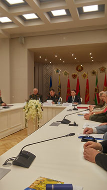 В рамках мероприятия участники поделились своим видением совершенствования форм и методов работы творческой интеллигенции в гарнизонах и воинских частях. Опытом использования возможностей музея по воспитанию допризывной и призывной молодежи, личного состава Вооруженных Сил Республики Беларусь на славной военной истории страны, боевых традициях воинов Красной Армии, партизан и подпольщиков поделился директор Белорусского государственного музея истории Великой Отечественной войны Дмитрий Геннадьевич Шляхтин.
