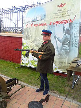 Перед входом в парковый комплекс 9 мая с 10-00 до 18-00 работала мобильная экспозиция «Освобождение Беларуси. Сентябрь 1943 г. – июль 1944 г.» Белорусского государственного музея истории Великой Отечественной войны.