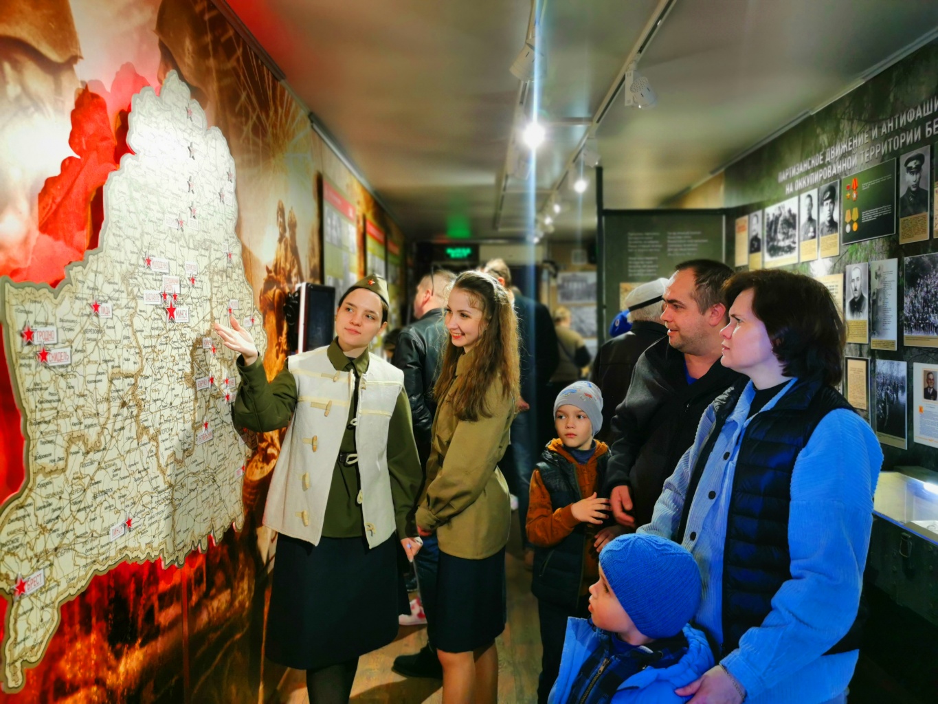 Научные сотрудники музея рассказали посетителям об основных событиях войны, городах-героях Беларуси, деятельности военных фотокорреспондентов и юных защитников Родины для завоевания Победы.