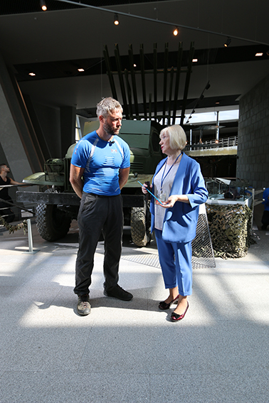 Ведущий научный сотрудник музея Каткова Лариса Алексеевна ознакомила французского гостя с экспозицией музея, мемориальным комплексом «Минск – Город-герой». Особое внимание Жонаса Берто вызвали материалы, посвященные авиаполку «Нормандия-Неман».