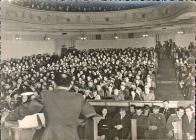 | В зале заседания суда. Минск. Январь 1946 г. | Военные преступники на Минском процессе. |